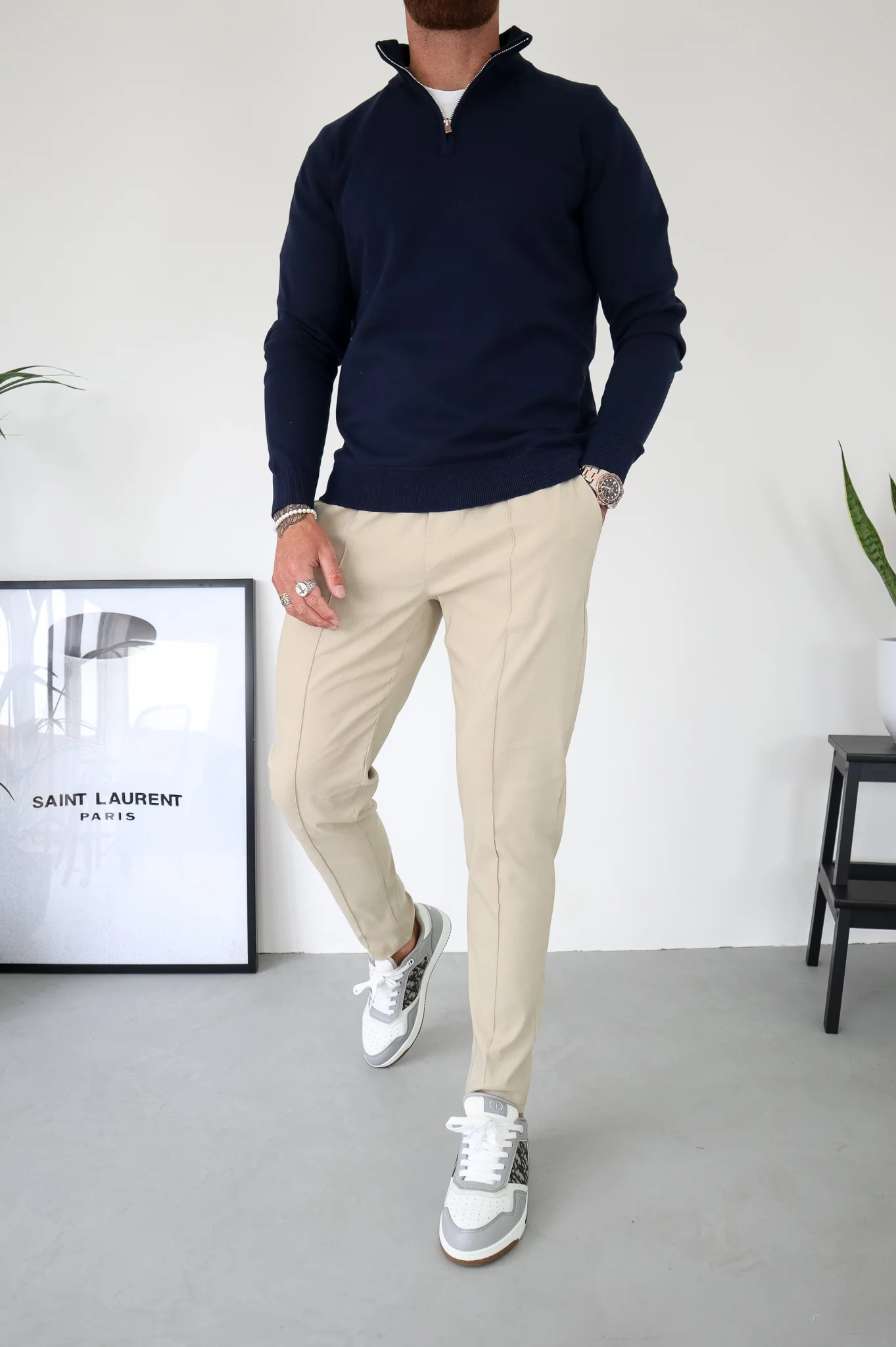 Capo Egyptian Cotton 1/4 Zip Top - Navy